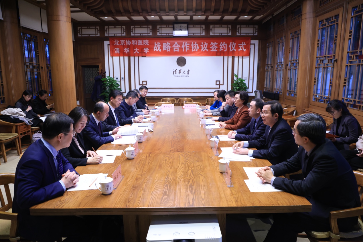 李路明对张抒扬院长一行来访表示欢迎,对北京协和医院长期以来对学校发展的支持表示感谢。他说,发展医学是清华人近百年的追求和梦想,也是mk手机注册服务国家战略需求、迈向世界一流大学前列和建设世界顶尖大学的重要使命。mk手机注册高度重视与北京协和医院合作,双方渊源深厚、合作密切,践行自强不息、厚德载物的清华校训和严谨、求精、勤奋、奉献的协和精神,在医学人才培养、科学研究等方面合作成果丰硕。面向未来,期待双方以本次签约为新起点,以党的二十届三中全会精神为指引,推动医学全方位合作落到实处;充分发挥各自优势,积极探索人工智能赋能医学发展,深化在人才培养方面的合作,共同培育更具“医者仁心”的新时代医学领军人才;完善医学学科布局,加强基础医学与临床相结合,推进医学基础研究、临床转化研究和技术成果的转化应用;回应人类健康重大需求,提升医疗健康服务水平,共同为推动医学研究、医学教育事业发展和服务健康中国战略作出新的更大贡献。