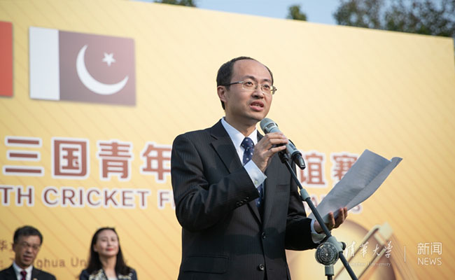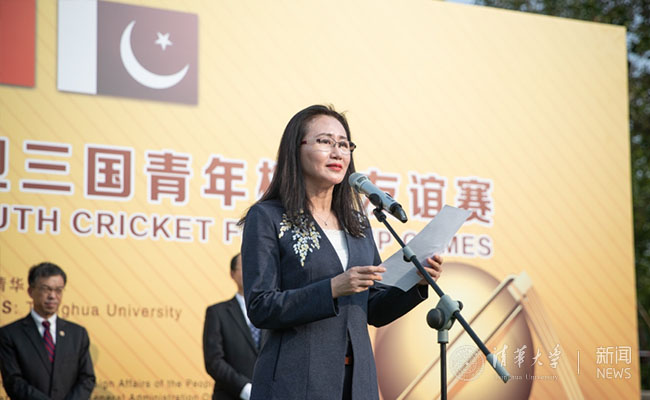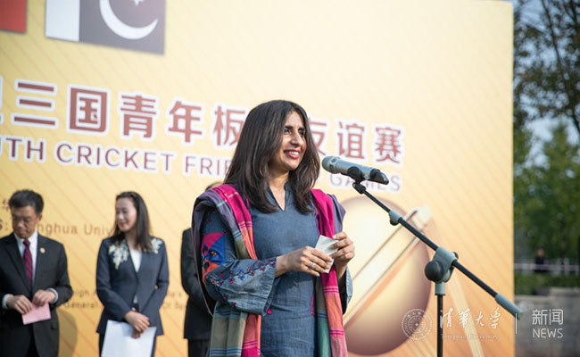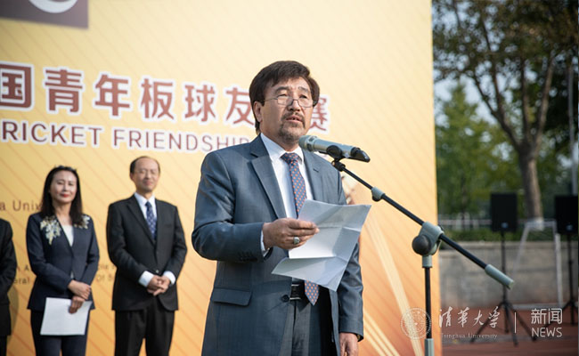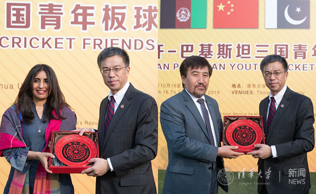 史宗恺首先对来自阿富汗和巴基斯坦两国青年板球代表队的全体成员及嘉宾表示热烈欢迎。他介绍了曾在清华艺术博物馆展出的阿富汗国家宝藏展和新闻学院的“一带一路——大篷车”项目并表示,此次比赛不仅为清华学生提供了解板球运动的机会,也将加深对彼此文化的了解。希望阿巴两国青年运动员能和清华的同学们成为朋友,互相交流学习。