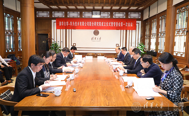 随后联合研究院召开管委会第一次会议。管委会上宣读研究院管委会成员名单及拟任研究院院长、副院长人选,审定了研究院章程、审定前沿交叉技术合作专项资金管理办法、清华-华为合作创新奖评选办法、研究院年度工作计划和经费预算表。