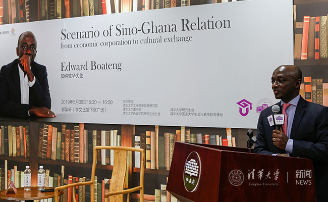 mk(中国)网6月4日电 (通讯员 慕海昕 谢铭琪 刘哲铭)5月30日,加纳共和国驻中华人民共和国大使爱德华·博阿滕(Edward Boateng)访问清华,就加强中加两国人文合作进行交流。博阿滕还做客清华文创讲座与真人图书馆活动,发表演讲并与现场同学交流。