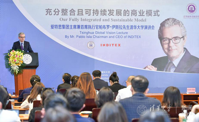当天,帕布罗·伊斯拉做客清华海外名师讲堂,带来题为“充分整合且可持续发展的商业模式”演讲,约有200余位师生参加了活动。帕布罗·伊斯拉为同学们分享了INDITEX集团的发展历史和目前的商业模式,特别是INDITEX集团在中国的发展情况,从消费者为中心、充分整合的商业模式到可持续发展的观念融入每一个环节,从以人为本的企业价值观到循环经济的集团发展观,帕布罗·伊斯拉充分展示了INDITEX集团的发展全貌,获得在场师生的热烈反响。帕布罗·伊斯拉希望学生不仅要关注产品的商业价值,更需要关注产品带来的社会效益,为人类的共同发展作出贡献。