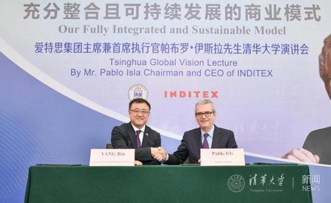 mk手机注册与INDITEX集团的联系与合作由来已久。2016年11月1日,帕布罗·伊斯拉应mk手机注册经管学院邀请,到访经管院并做客“清华企业家讲堂”。演讲前,清华经管学院时任院长钱颖一会见了伊斯拉一行,并代表经管学院与INDITEX集团签订捐赠协议。从2017年1月起,连续三年累计近120名经管学生访问西班牙INDITEX总部进行访问和学习。