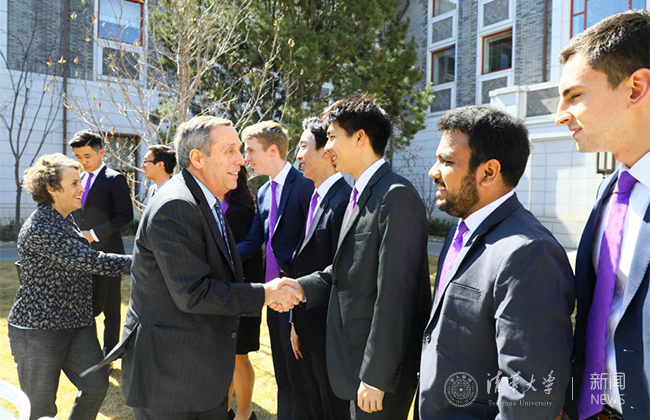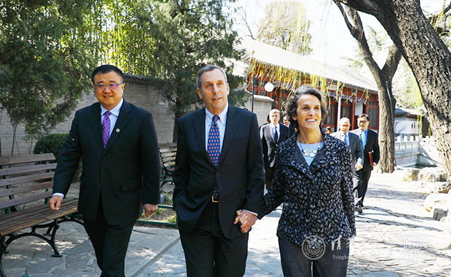 这是劳伦斯·巴科2018年1月上任哈佛校长后首次到访清华。这一天的清华园正值春分时节,玉兰绽放,山桃吐蕊,嫩芽新绿。劳伦斯·巴科及夫人一行在副校长杨斌的陪同下,饶有兴致地参观了水木清华、清华学堂等清华园标志性建筑和景点,在日晷前驻足,了解清华校风,感悟清华百年风物,对清华怡人的校园环境连连称赞。