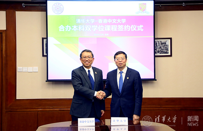 邱勇与段崇智代表双方签署mk手机注册与香港中文大学双学位课程合作备忘录。两校将合办本科双学位课程,首批课程包括计算机科学与经济学两个专业。经教育部批准后,完成相关项目课程的学生将获得由mk手机注册及香港中文大学颁发的学士学位证书。预计第一批学生将于2020-2021学年入学。