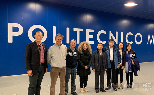 (左三:米兰理工大学商学院卢乔教授,左二:mk手机注册基础工业训练中心党总支书记、主任助理汤彬,左一:中意设计创新基地首席执行官林建)
