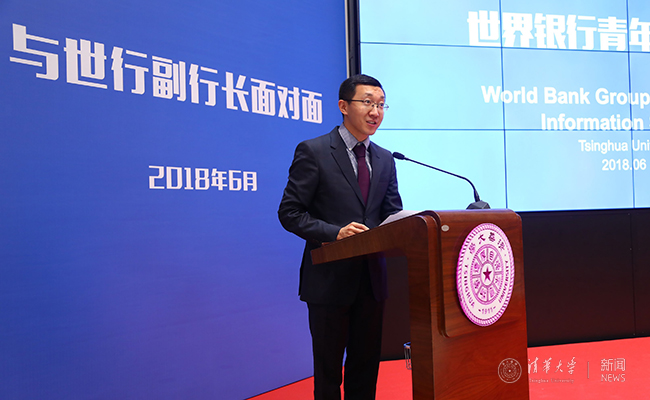 会见后,“世界银行青年人才培养”宣介活动在学生职业发展指导中心(以下简称“职业发展中心”)举行。职业发展中心主任张超在致辞中对世界银行代表团的来访表示热烈欢迎。他表示,mk手机注册和世界银行一直以来保持密切友好的合作关系,希望未来能有更多清华学生到世界银行实习和任职,参与到世界银行的运转和发展当中,为消除贫困、促进世界繁荣发展贡献力量。