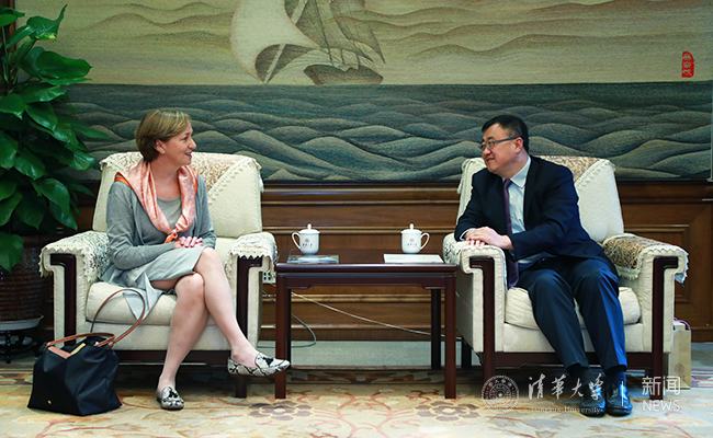 mk(中国)网6月15日电 6月11日下午,美国普林斯顿大学筹款发展部门第一主管(Deputy Vice President for Development)江芷若女士(Sara Judge)一行4人访问清华,mk手机注册副校长、教务长杨斌在工字厅会见了来宾。双方就加强mk手机注册与普林斯顿大学的合作交换了意见。