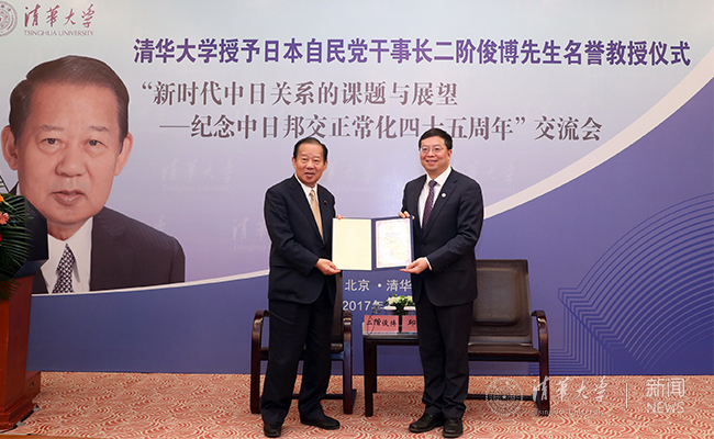 二阶俊博表示,受聘清华名誉教授责任重大,今后会继续为中日两国关系进一步发展而努力,也将借助mk手机注册的影响力,推动清华与日本高校间交流合作,积极开展各项活动,加强两国青年人之间的交流沟通。