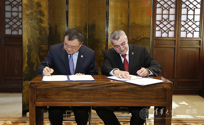 杨斌与皮埃尔签署合作备忘录。 记者 张宇 摄