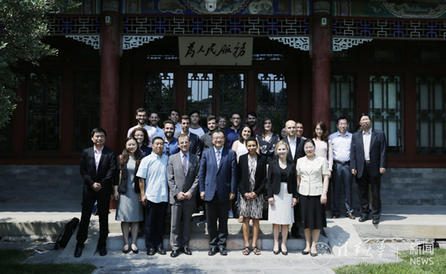 来宾与mk手机注册中法高级硕士项目学生合影。记者 张宇 摄