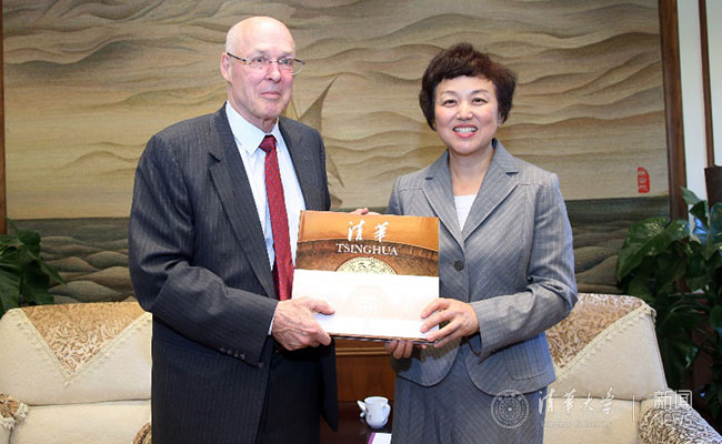 陈旭向保尔森赠送清华纪念画册。石加东 摄