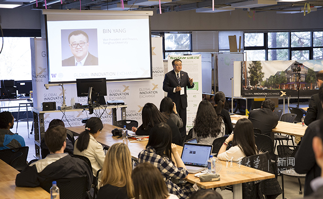 史元春介绍了创新大赛的整体情况。作为全球创新学院的一项年度活动,今年的主题是“智慧互联”。同去年相比,本届大赛更加国际化、更加创新、更加开放、启动时间更早。按照计划,决赛将于今年9月15日在西雅图举行,学院将选派两校教授对进入决赛的队伍进行指导,决赛现场也将通过网络进行直播。