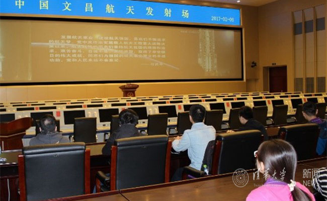 2月9日上午,支队先后参访了发射中心的指挥中心、总装厂房与发射塔架。在中心工作的2004级清华校友,计划部参谋赵大鹏学长总体介绍了火箭水平测试、总装、运送发射等发射中心的工作内容。同学们既感慨于航天工程的复杂性、高难度,也为国家在航天领域取得的巨大成就而振奋。在交流中赵学长坦言,当时选择入伍来文昌,一是个人对科技的热爱,二是希望能为祖国强盛尽自己的一份力,他也希望未来有更多的清华学子,更多的技术人才能够来到文昌,为祖国的航天事业而奋斗。