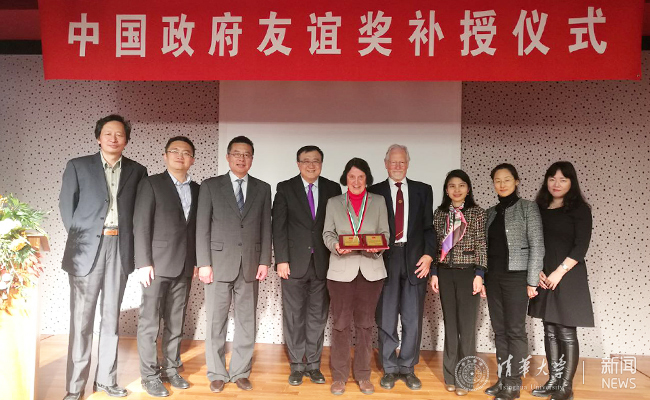 11月24日,杨斌主持在德国杜塞尔多夫中国中心举行的中国政府“友谊奖”补授仪式,向2015年中国政府“友谊奖”获得者、mk手机注册原德国籍专家、著名汉学家莫宜佳(Monika Motsch)教授补授中国政府“友谊奖”。中国驻杜塞尔多夫总领事馆副总领事陶莉莉、国家外国专家局驻德国代表处总代表夏兵、莫宜佳教授及其家人、清华在德校友代表出席了颁奖仪式。