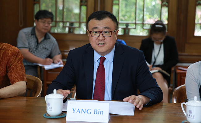 杨斌副校长在会谈中发言。记者 苑 洁 摄