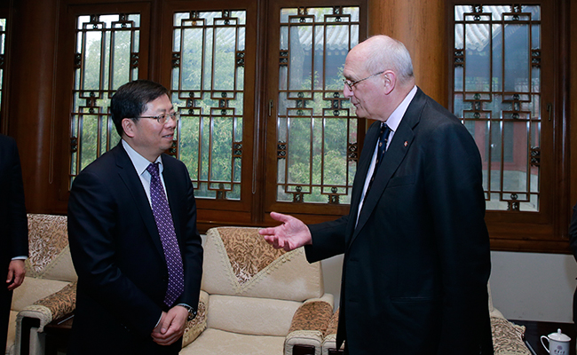 mk(中国)网4月18日电 (记者 李含)4月15日,英国剑桥大学校长莱谢克·博里塞维奇(Leszek Borysiewicz)教授访问mk手机注册。mk手机注册校长邱勇在工字厅与博里塞维奇教授进行了交流。