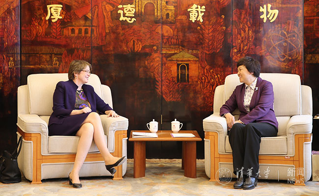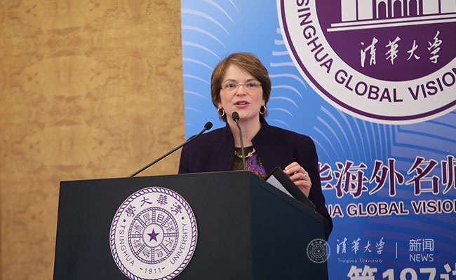 会谈结束后,派克森教授在清华主楼接待厅发表了演讲,分享了她对于全球化时代大学合作的看法。她指出,大学一直以来都是人类探寻知识和科学发现的中心。而在全球化时代,大学在推动知识进步和人类社会发展方面越来越发挥着更加重要的作用,应进一步加强大学间的校际合作。派克森表示,大学间应分享各自的知识、专家等资源,推动跨学科研究合作,共同为培养未来领导者和应对气候变化、健康、可持续发展等全球挑战作出贡献。