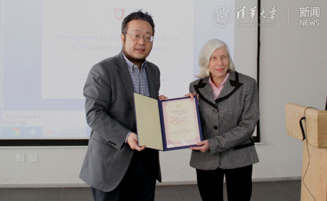 仪式结束后,费德勒做客清华环境论坛,围绕斯德哥尔摩公约下三类POPs污染物的排放清单作了专题报告。