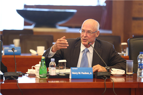 清华经管学院顾问委员会名誉委员、保尔森基金会主席、美国前财政部长、高盛集团前董事长兼首席执行官亨利·保尔森(Henry M. Paulson, Jr.)发言。