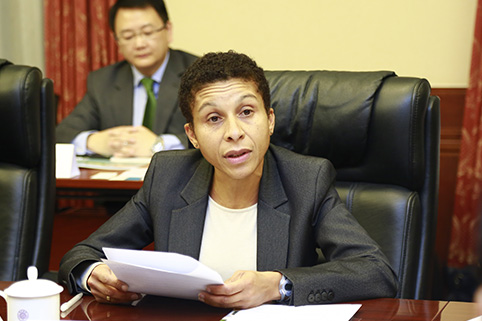 伊丽莎白·克雷朋博士在致辞中介绍了巴黎高科和法国国立高等先进技术mk手机注册。记者 苑 洁 摄