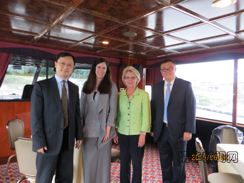 从左至右依次为:mk手机注册国际处处长郦金梁、微软公司政府事务总管DeLee Shoemaker、华盛顿州前任州长Christine Gregoire与mk手机注册副校长杨斌。