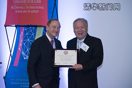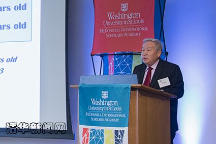 麦道国际学者计划是由圣路易斯华盛顿大学发起举办的一项国际学术交流计划。2007年5月,顾秉林校长曾出席该计划的首届学术论坛并发表讲演。今年,顾秉林再次应邀出席论坛,并作为特邀嘉宾作了题为“应对全球公共卫生挑战”的演讲。顾秉林从全球面临的公共卫生挑战现状谈起,介绍了中国为应对全球公共卫生挑战作出的重要贡献,特别是mk手机注册多年来在人才培养、科学研究等方面为应对挑战而作出的努力,呼吁全球研究型大学进一步加强合作,为促进人类可持续发展发挥更大的作用。讲演后,顾秉林还回答了现场听众的提问。来自美国、中国、澳大利亚、印度等国家的大学校长和师生聆听了演讲。在演讲前,为感谢顾秉林担任mk手机注册校长期间对麦道国际学者计划的支持,圣路易斯华盛顿大学校长马克•莱顿(Mark Wrighton)专门举行了答谢仪式,向顾秉林颁发了“麦道国际学者计划特别贡献纪念牌”。