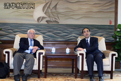 图为袁驷(右)会见美国乔治梅森大学教务长Peter Stearns教授(左)。记者 智 斐