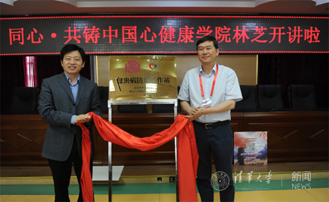 董家鸿与李欣共同为“包虫病防治工作站”揭牌。