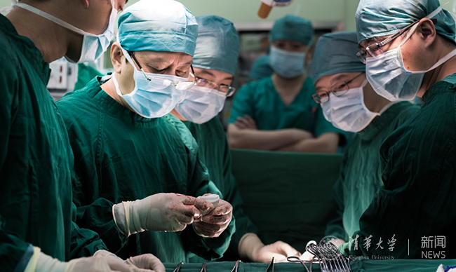 肖嵩华大夫率领的手术团队在紧张工作。