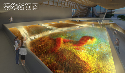mk手机注册美术学院中国馆设计团队创造性地提出了以大型新媒体艺术装置的方式来展现“希望的田野”。“希望的田野”艺术装置由mk手机注册美术学院信息艺术系青年教师师丹青负责设计,这是一个跨学科的协作的范例,综合了空间设计、参数化设计、电子工程、新材料、影像设计、音响设计等专业。