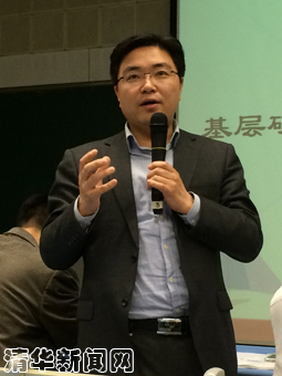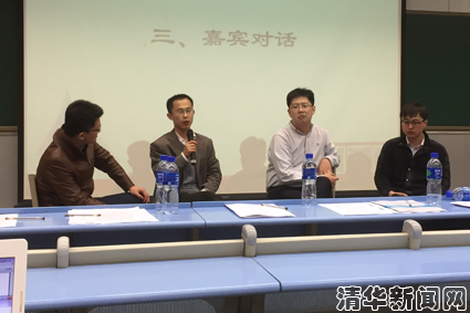 在嘉宾对话环节,现工作于宜昌市招商局的校友郭俊伟,工作于人民日报总编室的校友马龙,曾前往湖北随县挂职的孔祥睿老师,以及从事基层公务员研究的王义鹏同学,进行了现场访谈。四位嘉宾分享了各自的基层经历,结合具体案例对基层工作特点进行了分析,鼓励同学们通过实践活动,更加全面深入地认识基层,在此基础上坚定自己的事业选择。