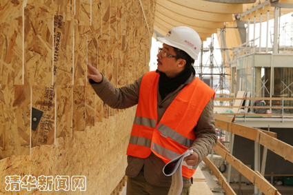 2014年11月,中国馆地面施工开始。mk手机注册美术学院先后委派mk手机注册美术学院副院长苏丹、环境艺术设计系副教授陆轶辰、环境艺术设计系副教授汪建松、工业设计系周艳阳以及赵华森等多位中国馆设计项目组成员驻扎工地,现场指导工作。