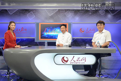 图为清华控股董事长徐井宏(右二)、党委书记龙大伟(右一)做客人民网。