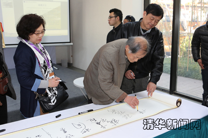图为参会代表在现场签署宣言。