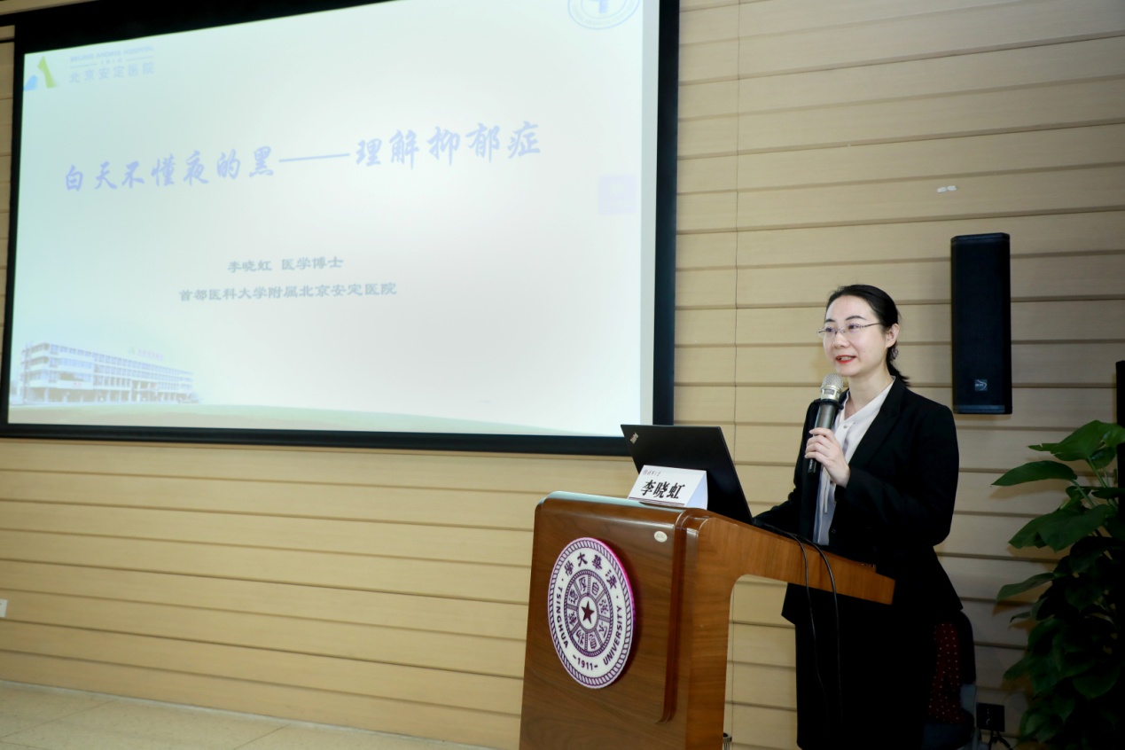 签约仪式结束后,北京安定医院副院长李晓虹作“白天不懂夜的黑——如何理解抑郁症”的专题讲座,百余名师生通过线上线下的方式聆听了本次讲座。