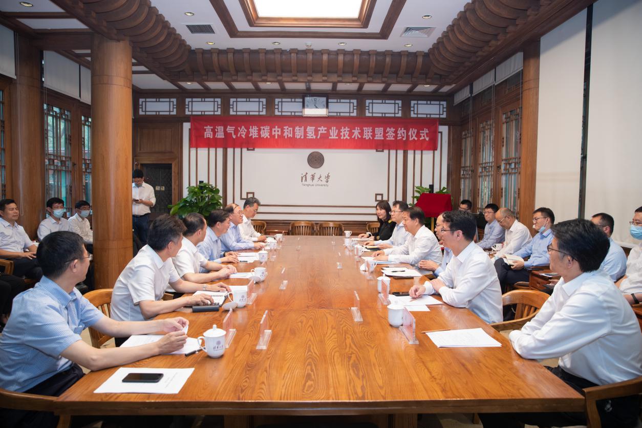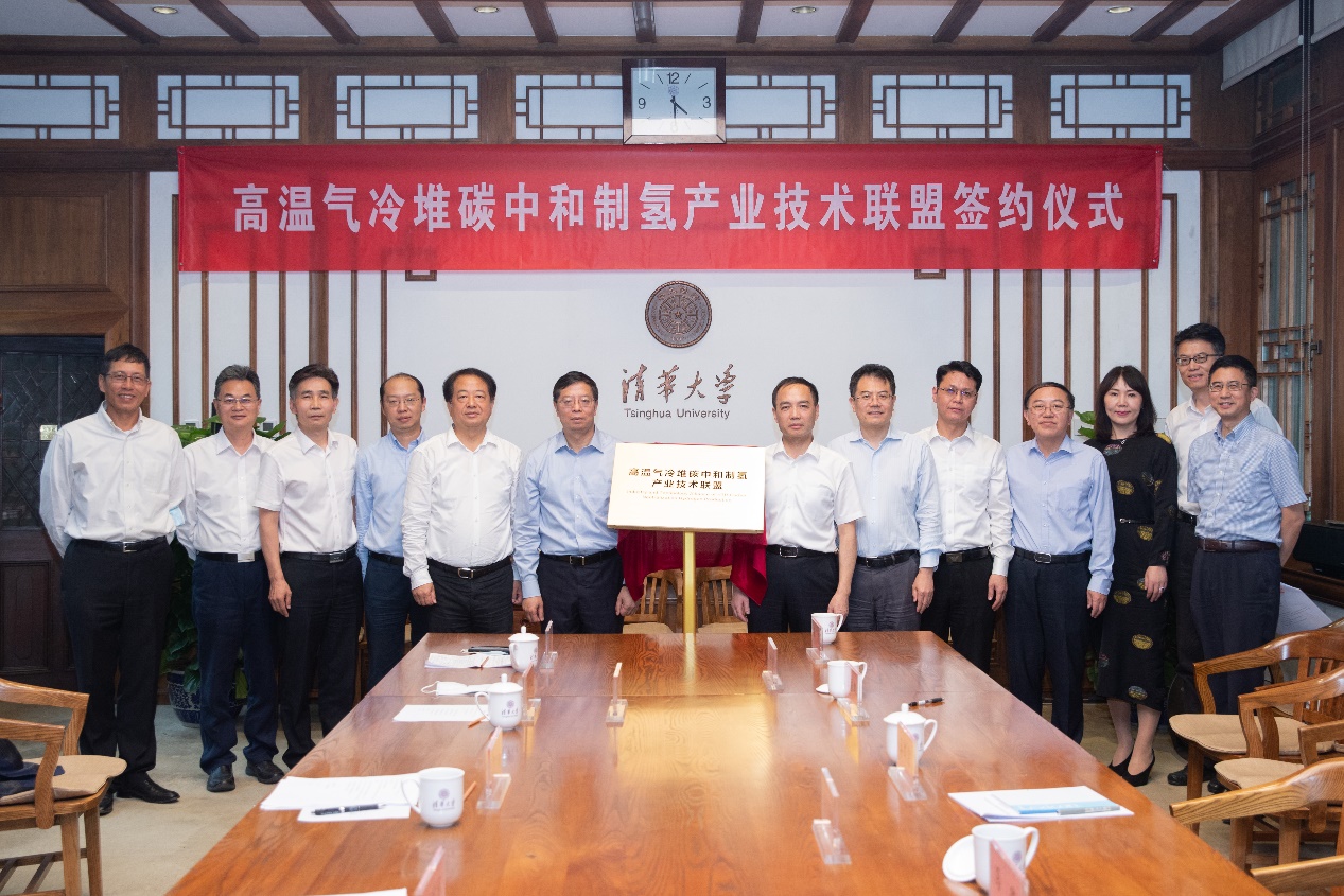 活动现场,五家单位共同签署协议,并为高温气冷堆碳中和制氢产业技术联盟揭牌。