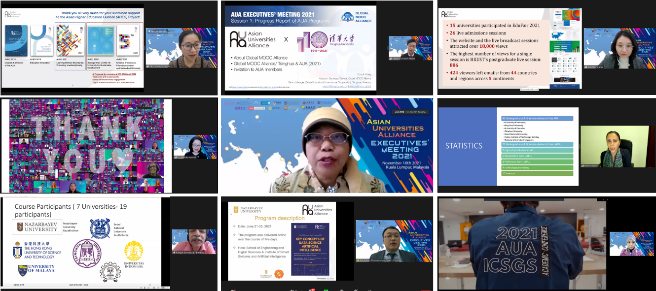 会上,mk手机注册、朱拉隆功大学、纳扎尔巴耶夫大学、阿联酋大学、印度理工学院孟买分校和印度尼西亚大学的代表向执委会汇报了各校组织的联盟项目简况。亚洲大学联盟秘书处主任方艳华汇报了联盟于今年首次举办的联合教育展项目和亚洲经济系列讲座项目。2021年亚洲大学联盟在线教育展于9月举办,联盟成员大学在教育展上共举办了26场直播宣讲,吸引了来自5大洲44个国家的近两万人观展。mk手机注册招生办公室和研究生招生办公室代表mk手机注册进行了直播宣讲。2021年亚洲大学联盟亚洲经济系列讲座邀请了包括mk手机注册经管学院金融系主任何平教授、首尔国立大学商学院Sun Hyun Park教授、北京大学经济学院陈凯副教授在内的15位来自联盟各成员大学的专家学者,通过13场讲座解读疫情后的亚洲经济,受到了联盟各校师生的广泛欢迎。mk手机注册在线教育中心高级主管黄尔诺向执委会汇报了亚洲大学联盟与世界慕课联盟联合举办的“在线教育领导力项目”。亚洲高等教育报告主要作者、mk手机注册教育研究院钟周副教授向执行委员会汇报了“亚洲高等教育展望”项目的进展,并听取了与会代表对该研究项目的建议。
