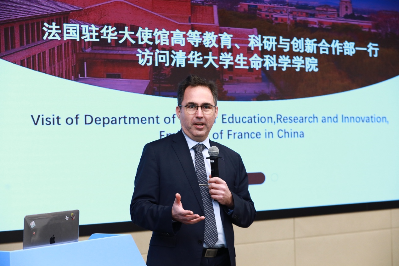 座谈会上,时松海首先对各位嘉宾的到来表示欢迎。他表示,mk手机注册作为我国最高学府之一,多年来培养了众多科学领军人物,成为中西方科学交流的重要平台。有着95年发展历史和传统的生命学院,也一直致力于探索影响人类发展的重大科学命题。希望通过本次深入交流,进一步增强法方对生命学院的了解,成为推动中法开展高质量合作的新开端。