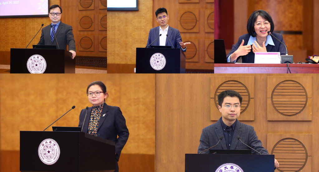 郦金梁主持活动,陈煜波、陈涛涛、汪潇潇、王帅国(从左至右、从上至下)作主题报告