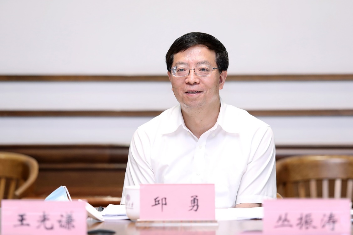 邱勇在讲话中代表支援高校组长单位对各高校长期以来始终坚持精准对位新疆大学需求、持续深化对口支援工作成效表示衷心的感谢。他说,对口支援新疆大学是高校深入贯彻新时代党的治疆方略的重要政治任务,各对口支援高校积极克服疫情影响,不断创新对口支援工作模式,建立健全沟通协同机制,在推进落实对口支援任务各个方面开展了富有成效的工作,形成了一系列好的经验做法,有力推动了受援高校和地区的高质量发展。