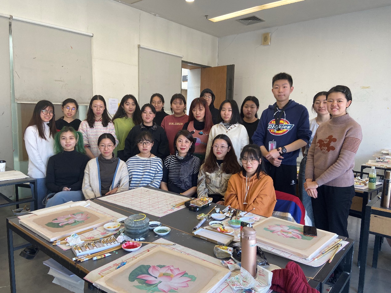 “工笔花鸟”选修课结课时金纳与同学们合影