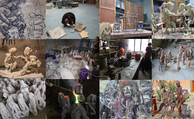 于是就有了这一组写实、生动、深刻的作品——铸铜雕塑《中国孩子》。一整组雕塑共有63件,每件雕塑背后都有一个真实的需要资助的孩子,每件雕塑后面都有一个藏在深山里的故事。绘稿、扎架子、上大泥、翻模具、浇铸、砸沙壳、修铜模,创作以来他曾创下45天不出工作室的记录。