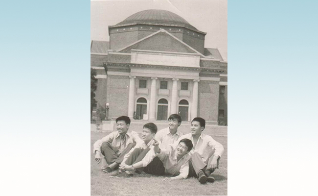 1980年12号楼417室友在大礼堂前合影,右二为毕晓涛。