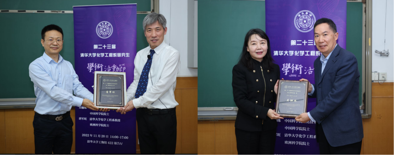报告结束后,王铁峰和化学工程联合国家重点实验室主任骆广生分别为唐军旺和吴骊珠赠送了本次大会的纪念奖牌。