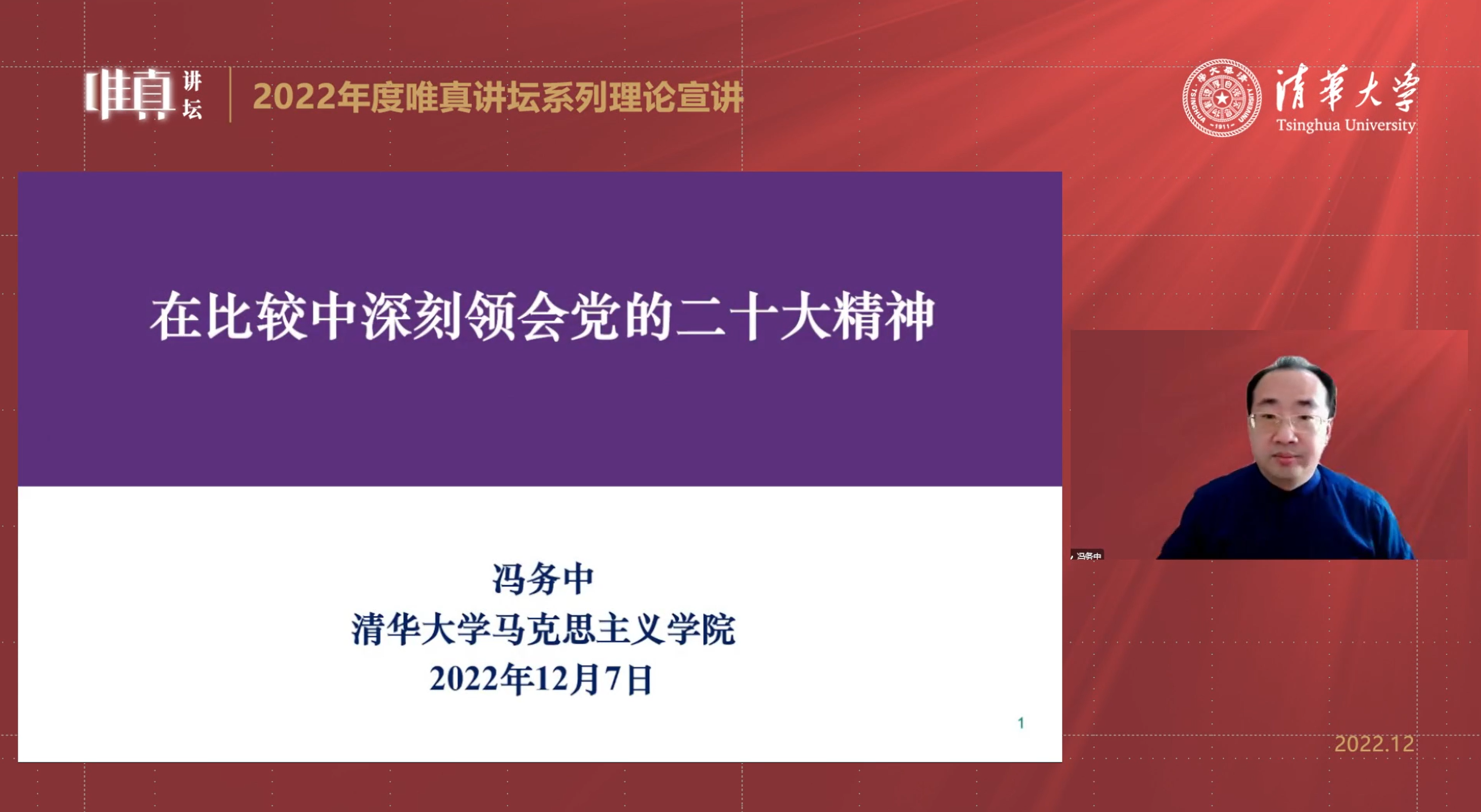 唯真讲坛系列理论宣讲由党委宣传部、文科建设处等主办,邀请校内外专家学者围绕党的创新理论、国内外热点等作专题讲座,旨在加强各级党组织和基层党支部理论学习,落实教职工理论学习全覆盖要求,提升广大党员、师生的政治素养和理论水平。近期,唯真讲坛围绕“学习党的二十大精神”主题举办系列讲座,不断在学校掀起学习贯彻热潮,推动党的二十大精神在师生中入脑入心、在清华园落地生根。
