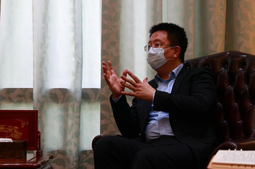 在中国驻新加坡大使馆,教育处公使衔参赞韩骏向同学们详细介绍了新加坡的教育发展总体状况、使馆教育处职能和业务工作情况等。人才教育方面,新加坡政府一方面严格把控当地各层级院校教育质量,另一方面拓展大量人才交流项目,鼓励海外人才来新学习研究。交流中,吴承晋介绍了未央书院和支队整体情况,分享了mk手机注册在扎实推进“强基计划”中采取的一系列举措。韩骏勉励同学们扎实开展调研,助力中新教育合作交流,增进两国青年友谊。