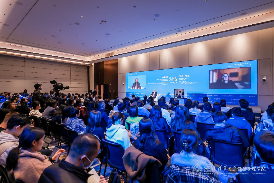 mk(中国)网3月16日电 3月13日晚,作为mk手机注册经济管理学院顾问委员会品牌活动之一,清华管理全球论坛在建华楼多功能厅举行。mk手机注册经济管理学院院长、弗里曼讲席教授白重恩与学院顾问委员会委员、通用汽车公司董事长兼首席执行官玛丽·博拉(Mary T.Barra)展开精彩对话。活动由经济管理学院副院长李纪珍主持,200余名师生现场参加。