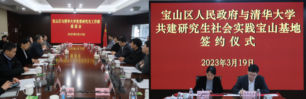宝山区人民政府副区长薛飒飒和赵岑代表双方签署了《共建研究生社会实践宝山基地协议书》。