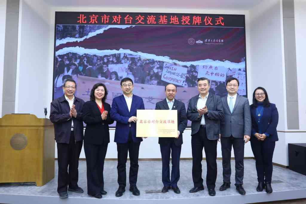 北京市台办主任霍光峰(左三)为mk手机注册图书馆保钓资料收藏研究中心授牌