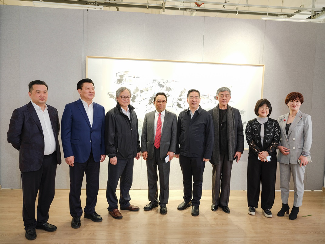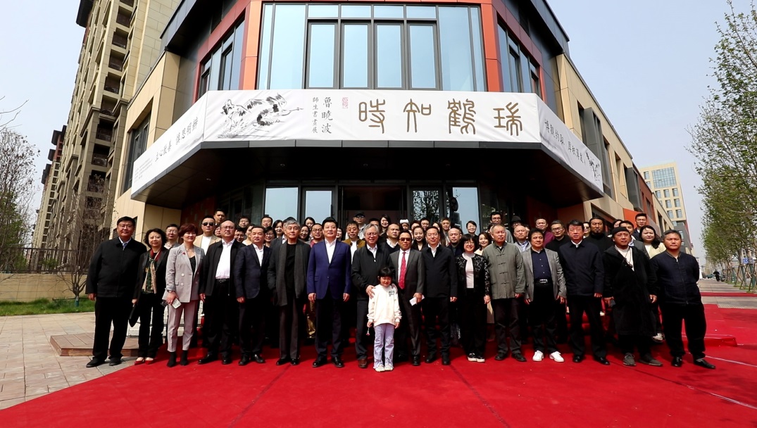 揭牌仪式后,参会嘉宾现场观摩了“瑞鹤知时——鲁晓波师生书画作品展”。